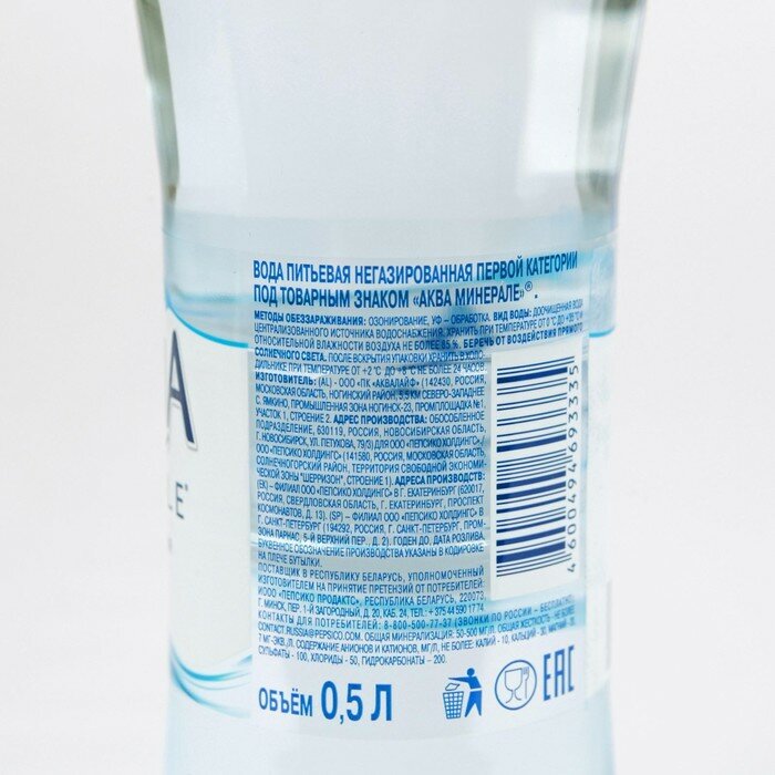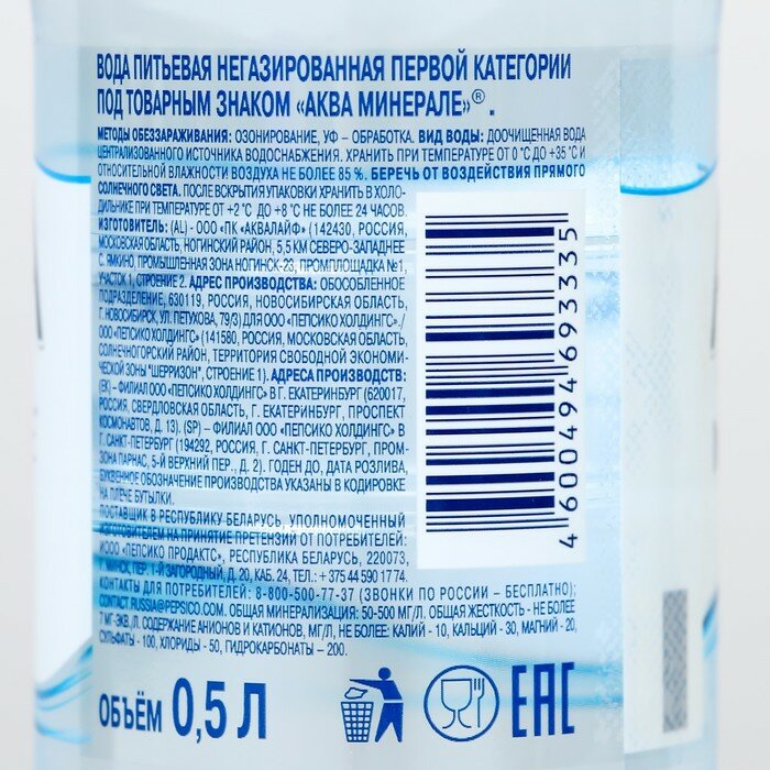 Вода негазированная питьевая AQUA MINERALE 0,5 л, 340038166 621731