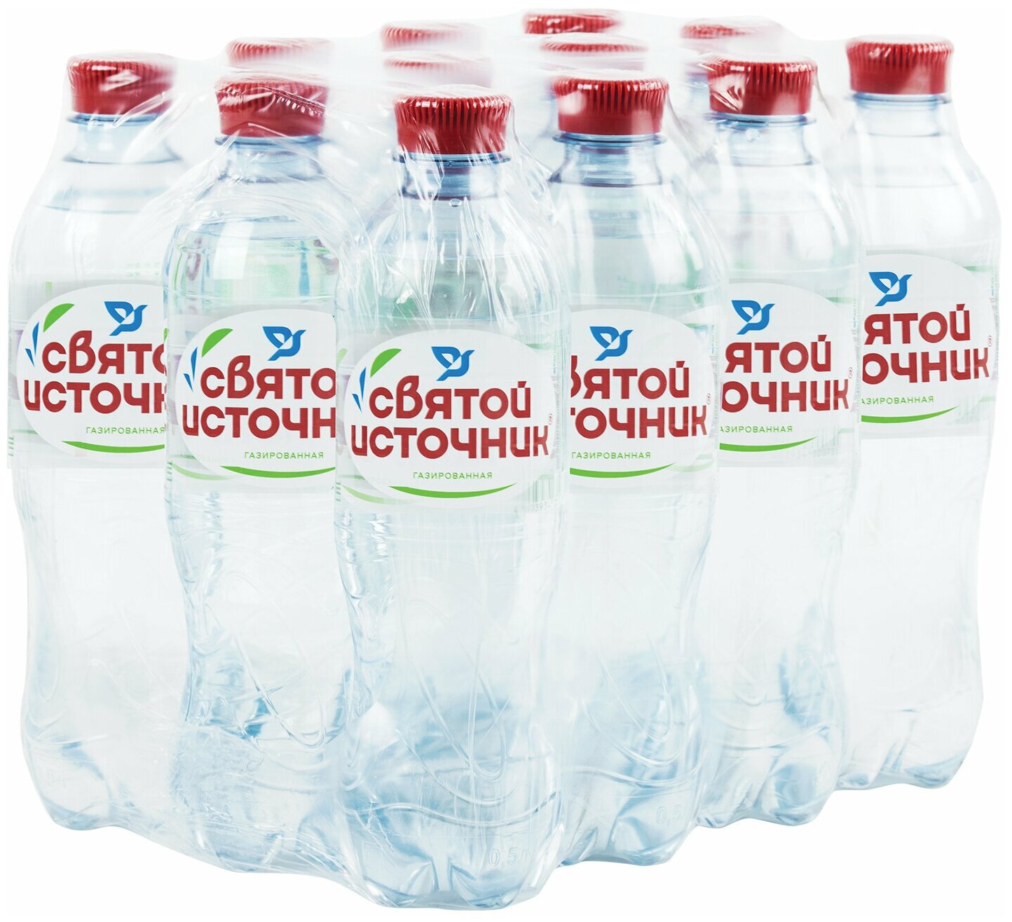 Вода питьевая Святой источник газированная 0.5 л ПЭТ упаковка 12 штук
