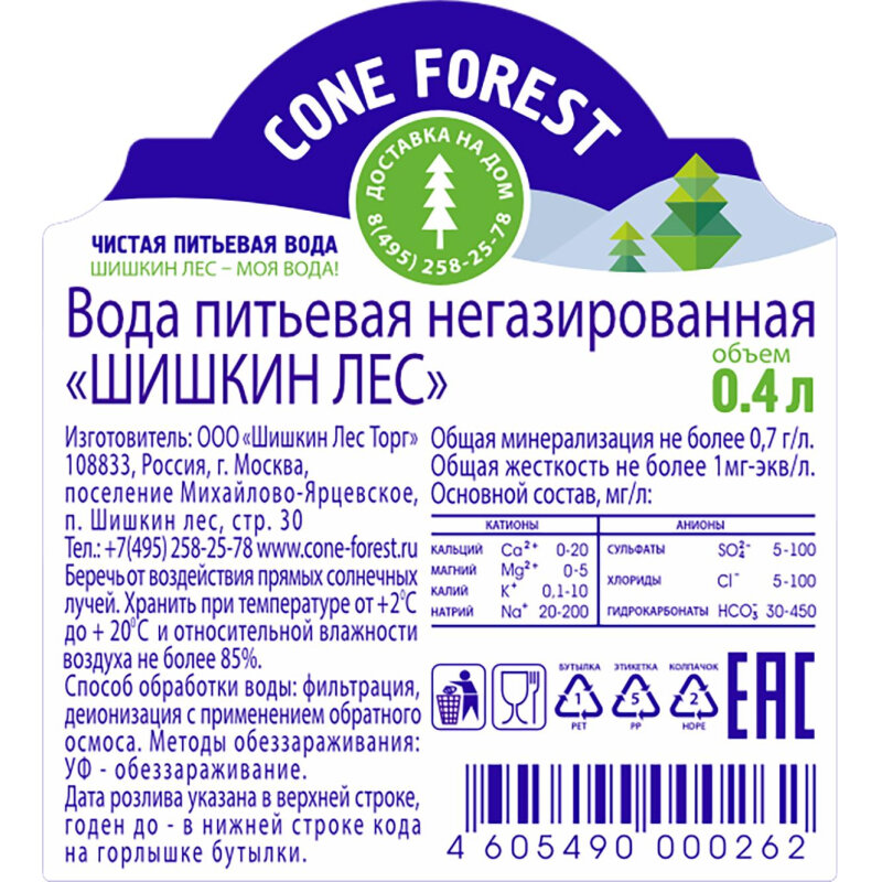 Вода "Шишкин Лес" негаз 0,4л.*12шт. Cone Forrest