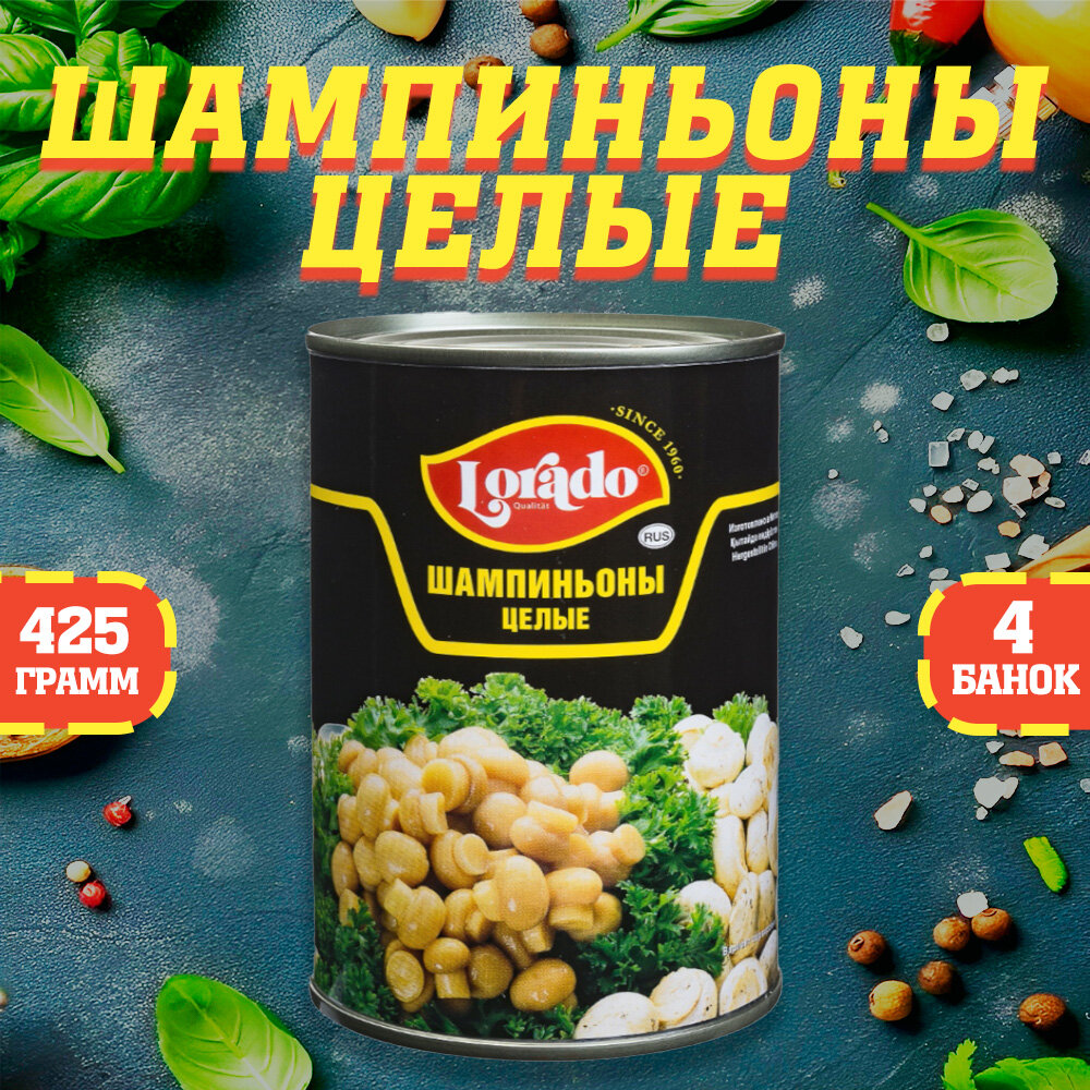 Грибы шампиньоны целые, Lorado, 4 шт. по 425 мл интересное: