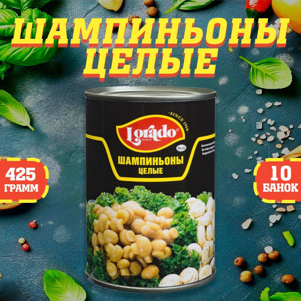 Грибы шампиньоны целые, Lorado, 10 шт. по 425 мл интересное: