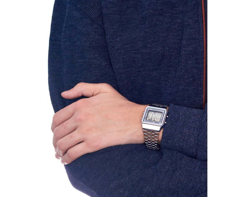 Наручные часы CASIO A-500WA-7D мужские, кварцевые, будильник, хронограф, секундомер, таймер обратного отсчета, подсветка дисплея, водонепроницаемые, серебряный