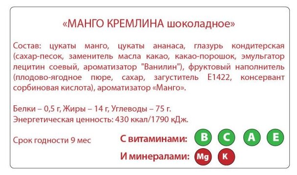 Конфеты шоколадные Кремлина манго в шоколаде, 1кг интересное: