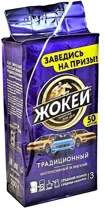 Кофе молотый жокей "Традиционный", натуральный, 250 г, вакуумная упаковка, 0305-26