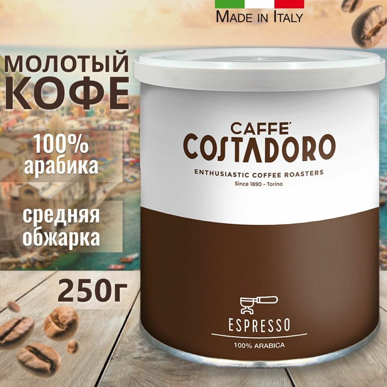 Кофе молотый COSTADORO ARABICA ESPRESSO 250 г. жестяная банка интересное: