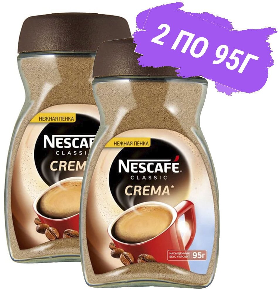 Купить Nescafe Classic Crema кофе растворимый 2 банки по 95 г / Растворимый кофе Nescafe Classic Crema / Кофе Нескафе классик крема / Растворимый кофе в стеклянной банке