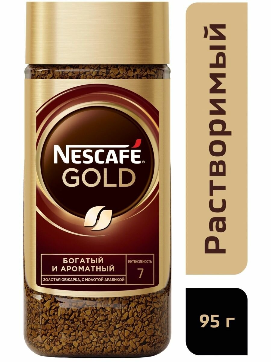 Кофе Nescafe Gold, растворимый, сублимированный, 95г., стекло