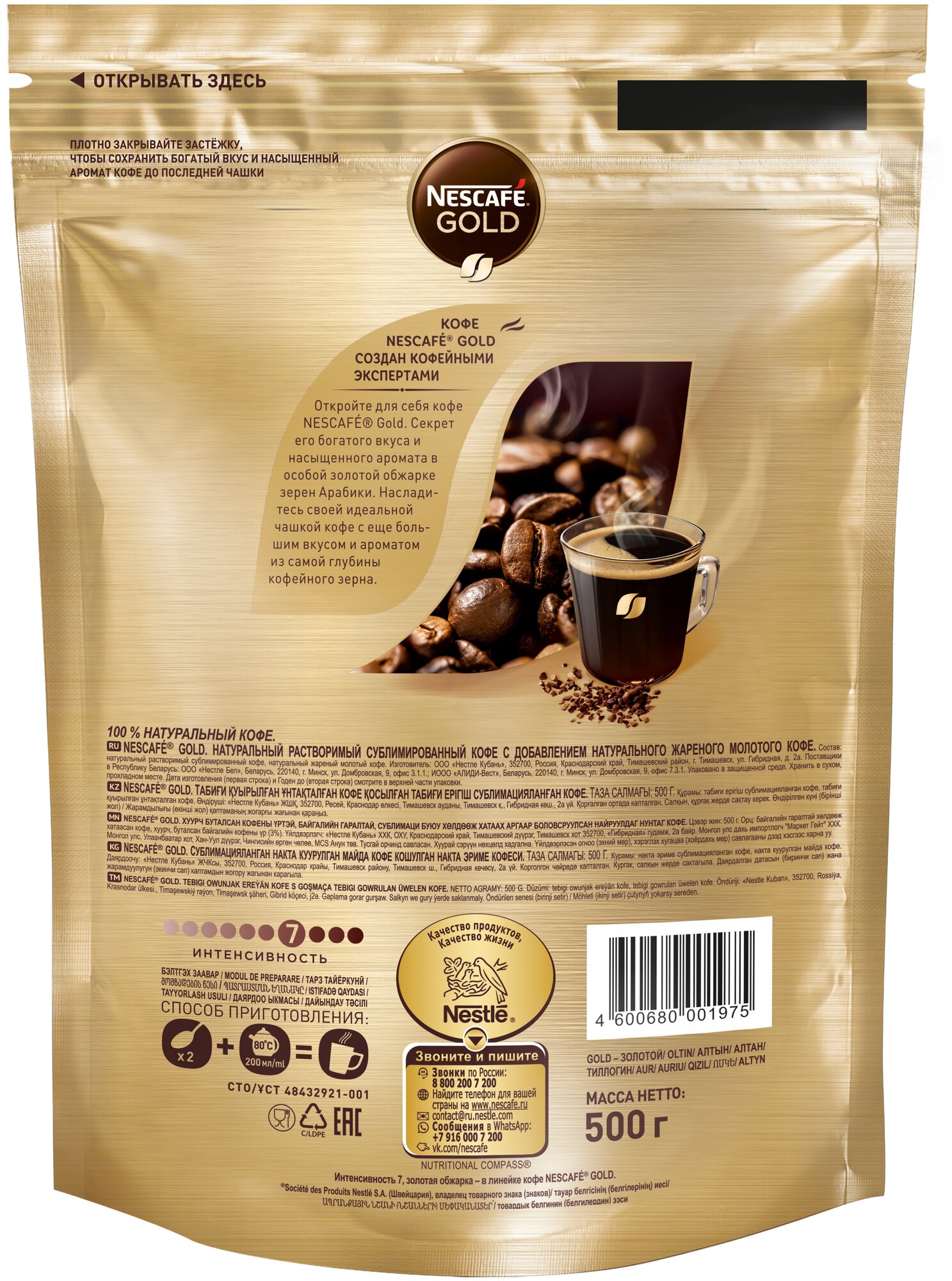 Кофе растворимый Nescafe Gold, пакет, 750 г