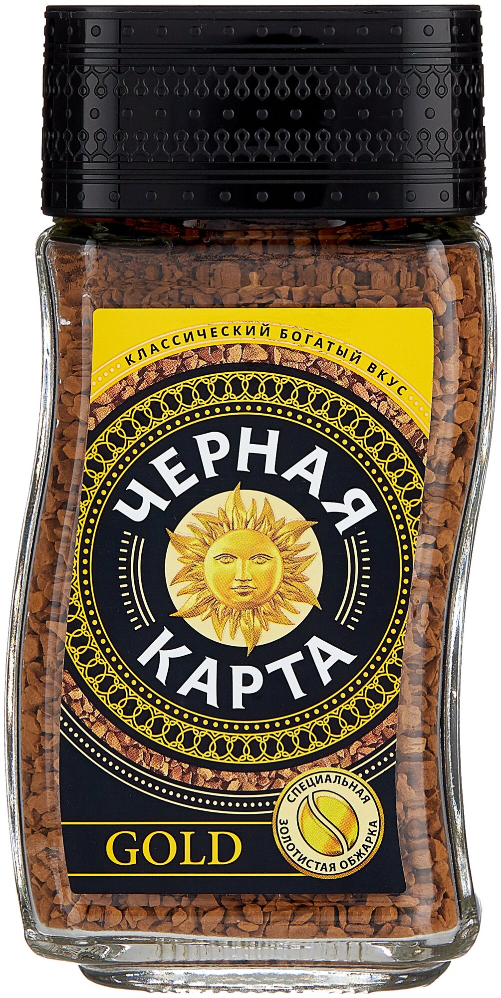 Кофе растворимый черная карта "Gold", сублимированный, 190 г, стеклянная банка