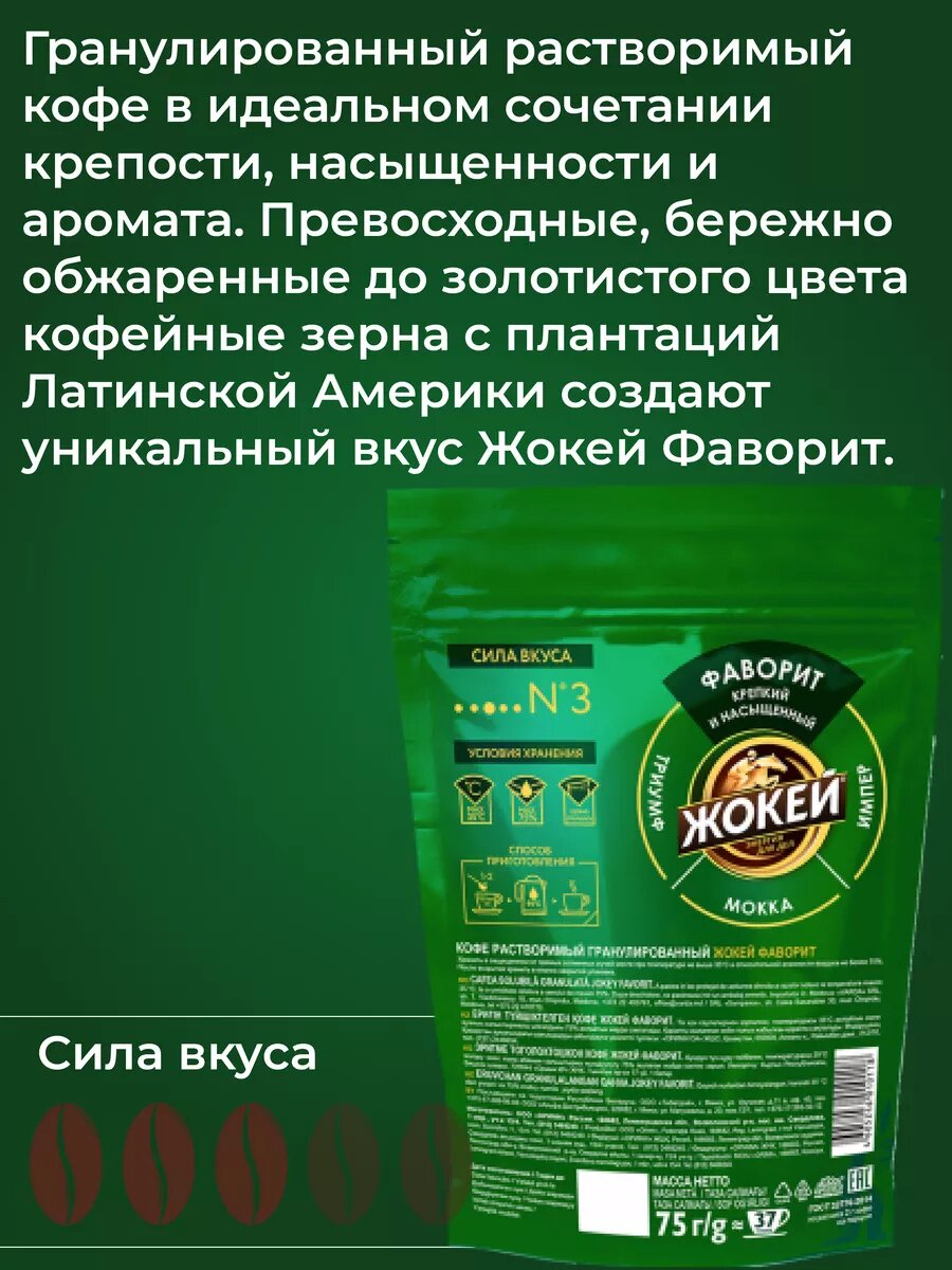 Кофе растворимый гранулированный фаворит, пакет 75 Г, жокей