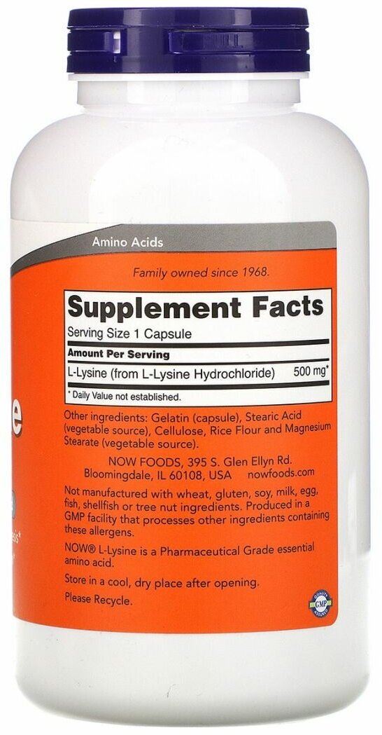 Now Foods L-lysine L-лизин 500 мг, 250 капсул интересное: