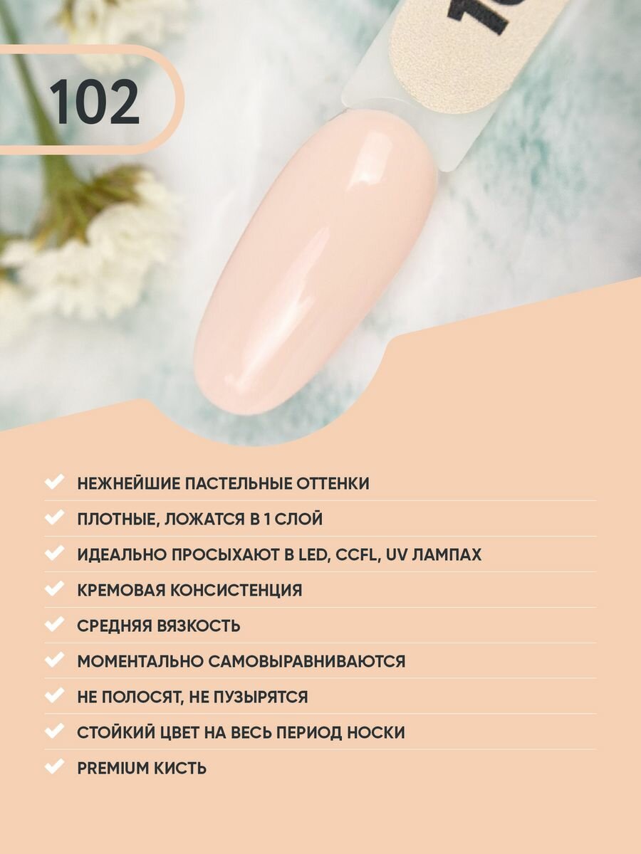 Гель лак для ногтей Пастельная коллекция Gelato №102, нежно-персиковый, 8 мл