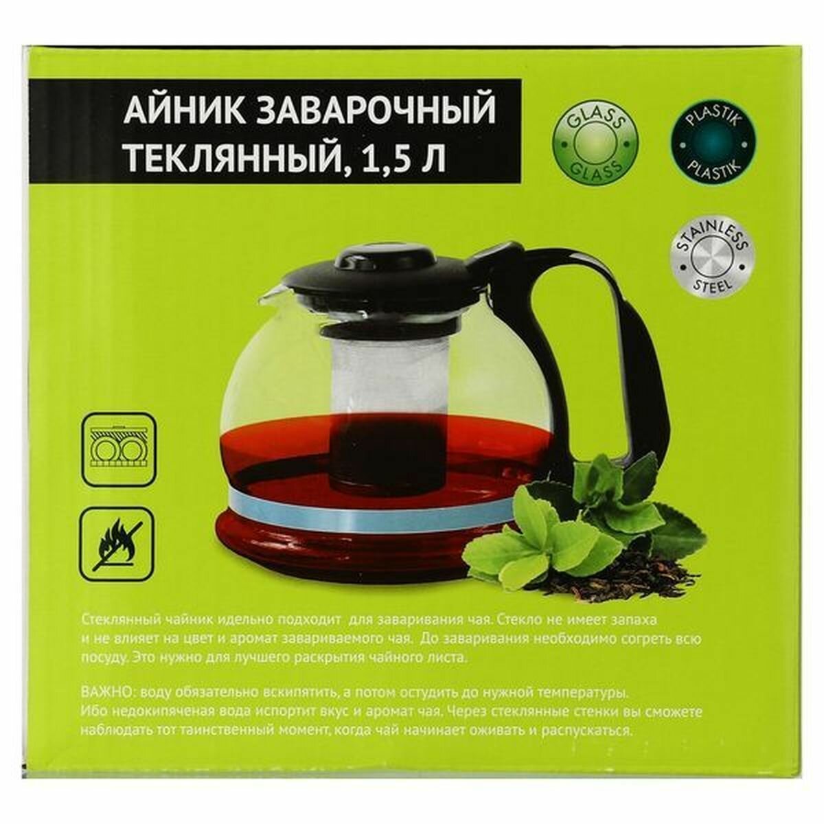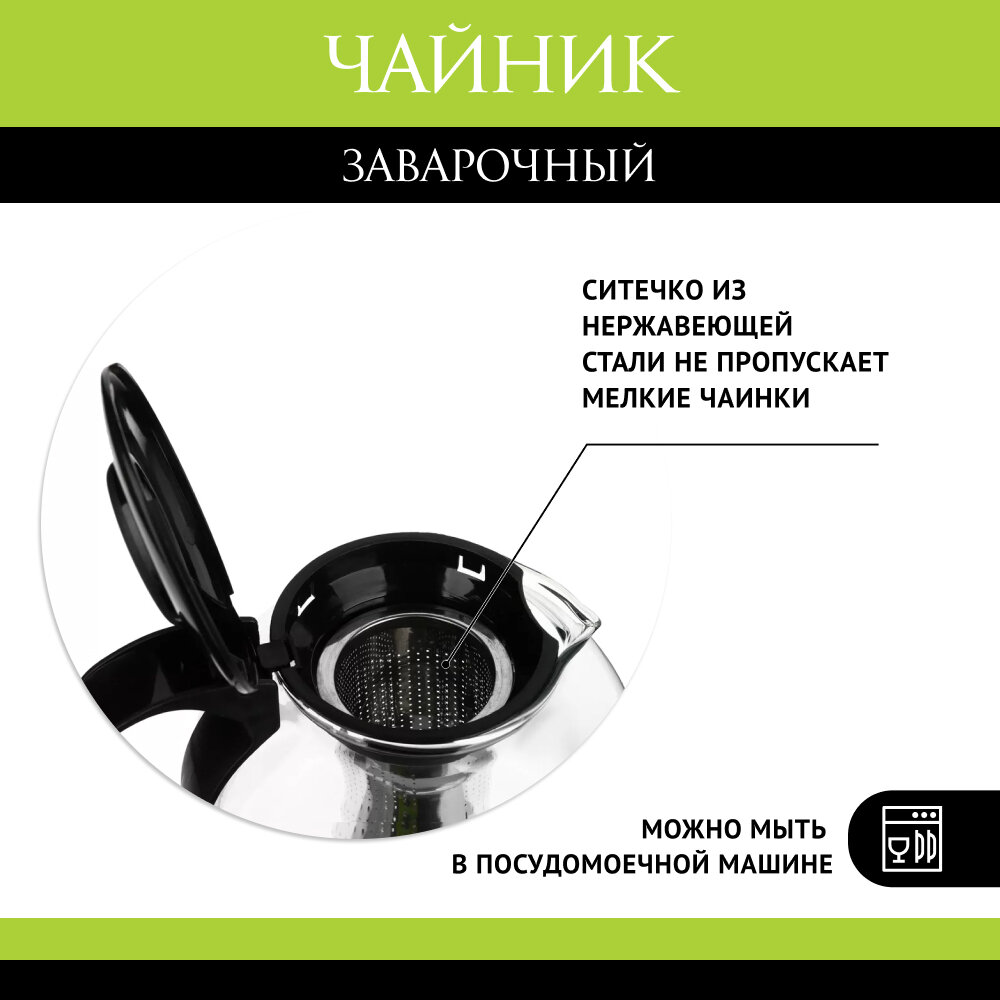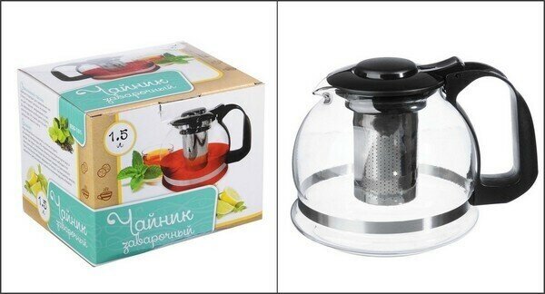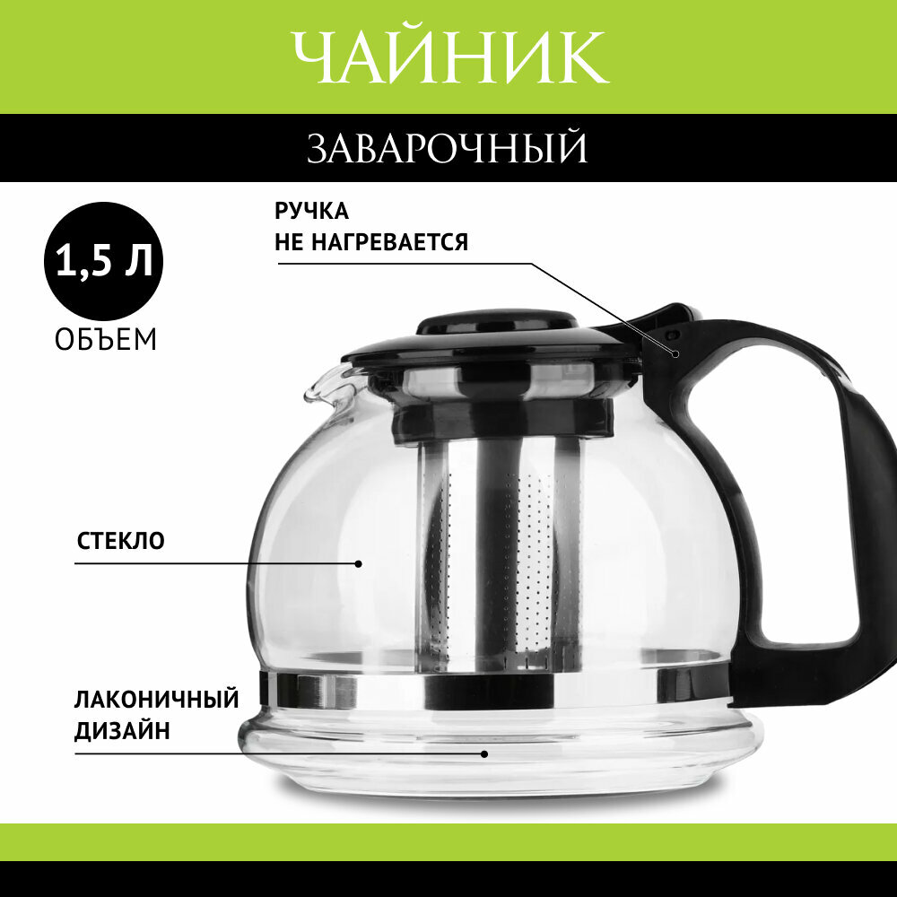 Чайник заварочный 1500мл, ситечко из нержавеющей стали, стекло, полипропилен интересное: