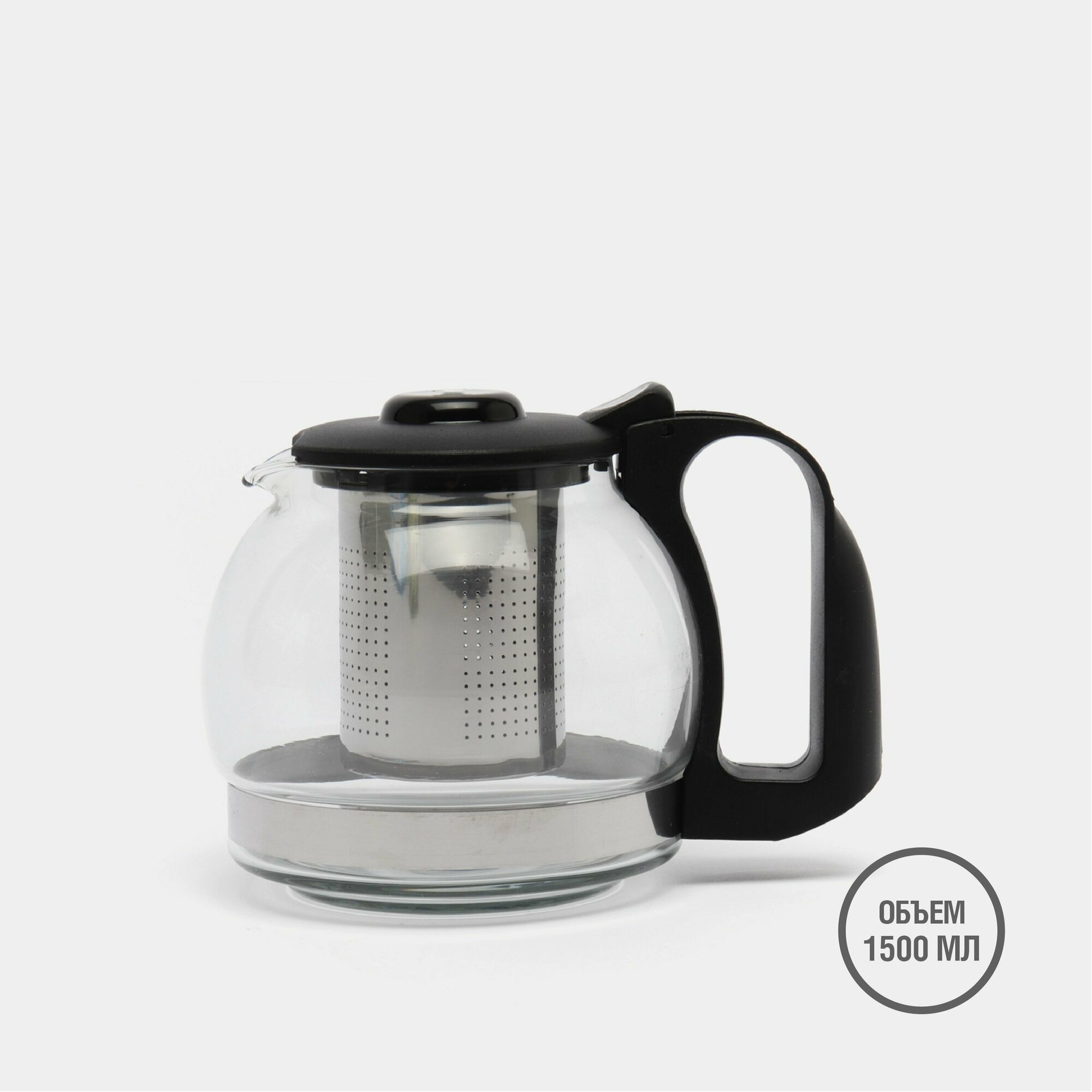 Купить Чайник заварочный 1500мл, ситечко из нержавеющей стали, стекло, полипропилен