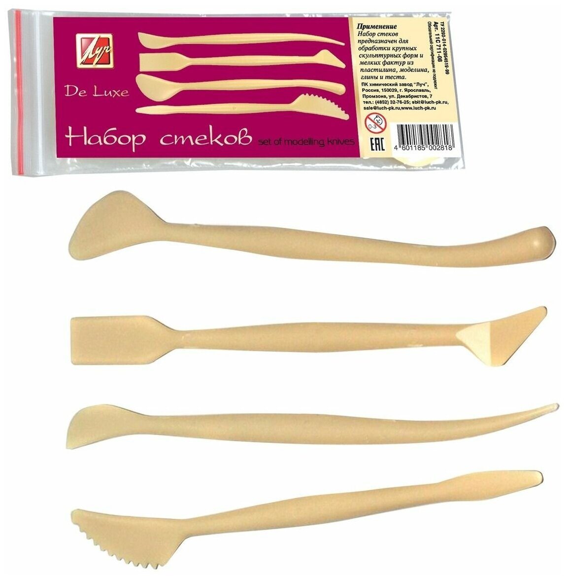 Стеки Луч - De Luxe, для лепки, 4 штуки, пластик, 1 набор