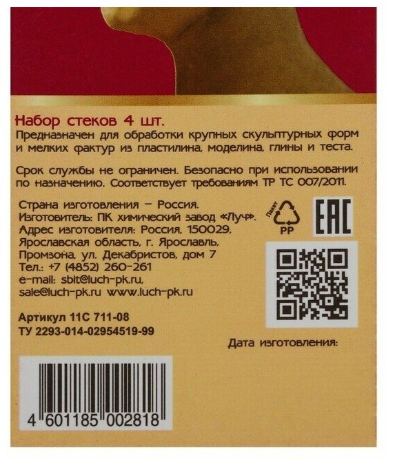 Стеки для лепки ЛУЧ, набор 4 шт., "Люкс", 11С711-08