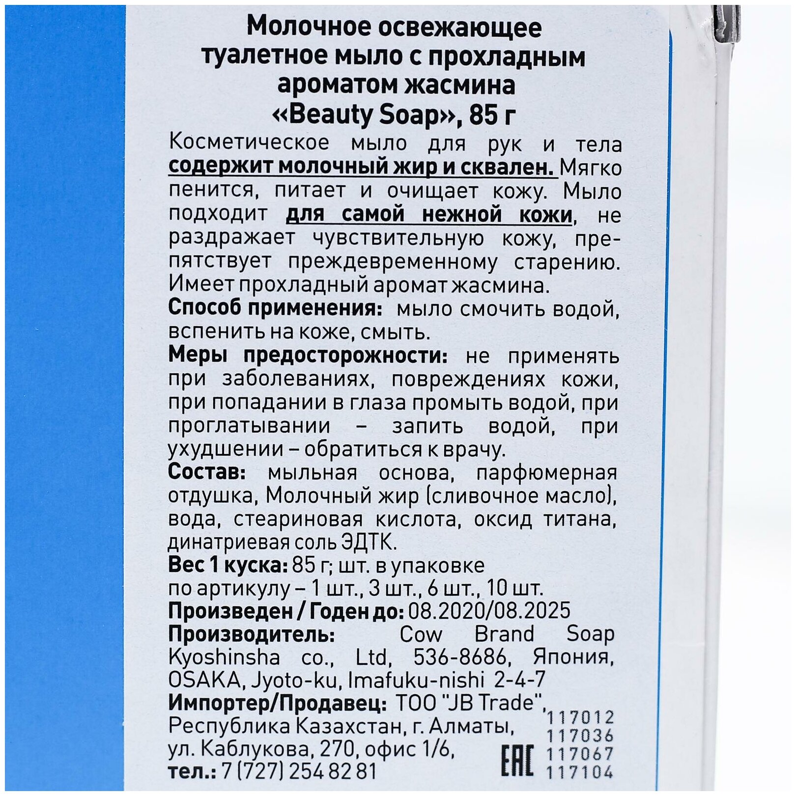Купить COW Молочное освежающее мыло с прохладным ароматом жасмина Beauty Soap кусок 85г * 6 шт