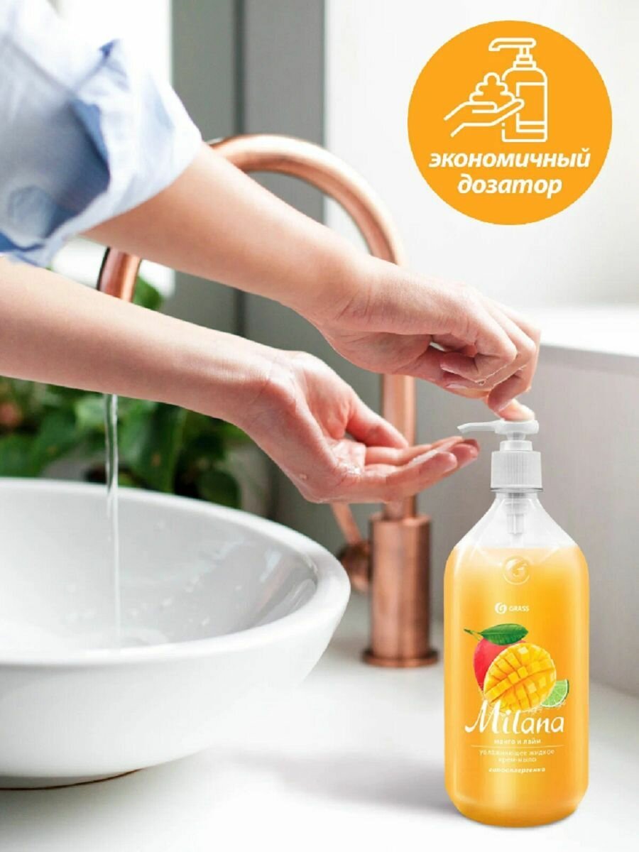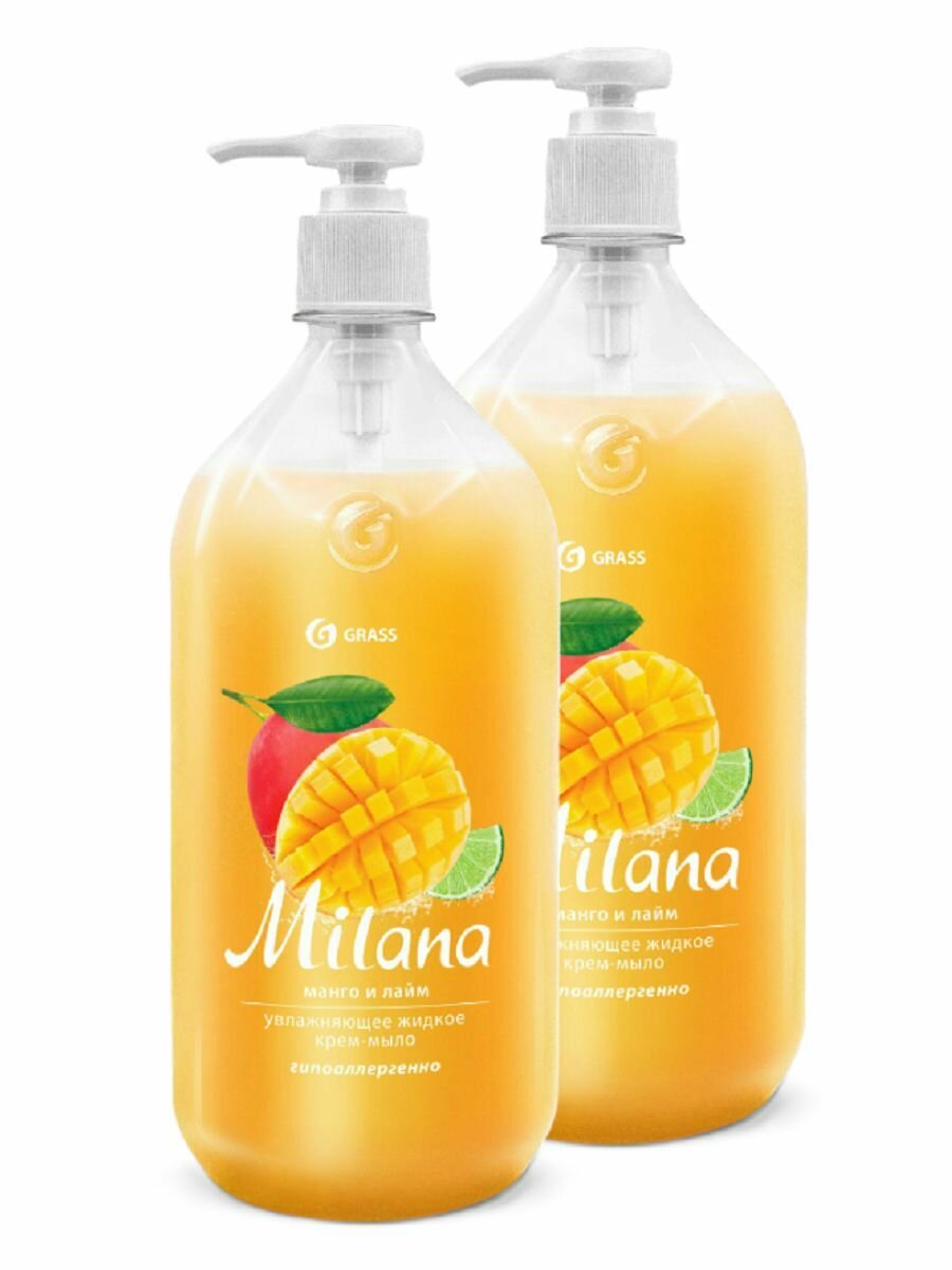 Grass Жидкое крем-мыло Milana, Манго и лайм, 1000 мл, 2 шт /