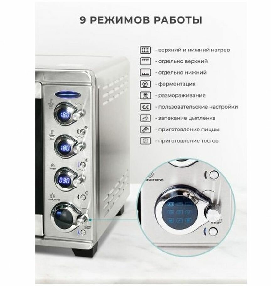 Мини печь с конвекцией и грилем GEMLUX GL-OR-1538LUX, 38 л, 1800 Вт