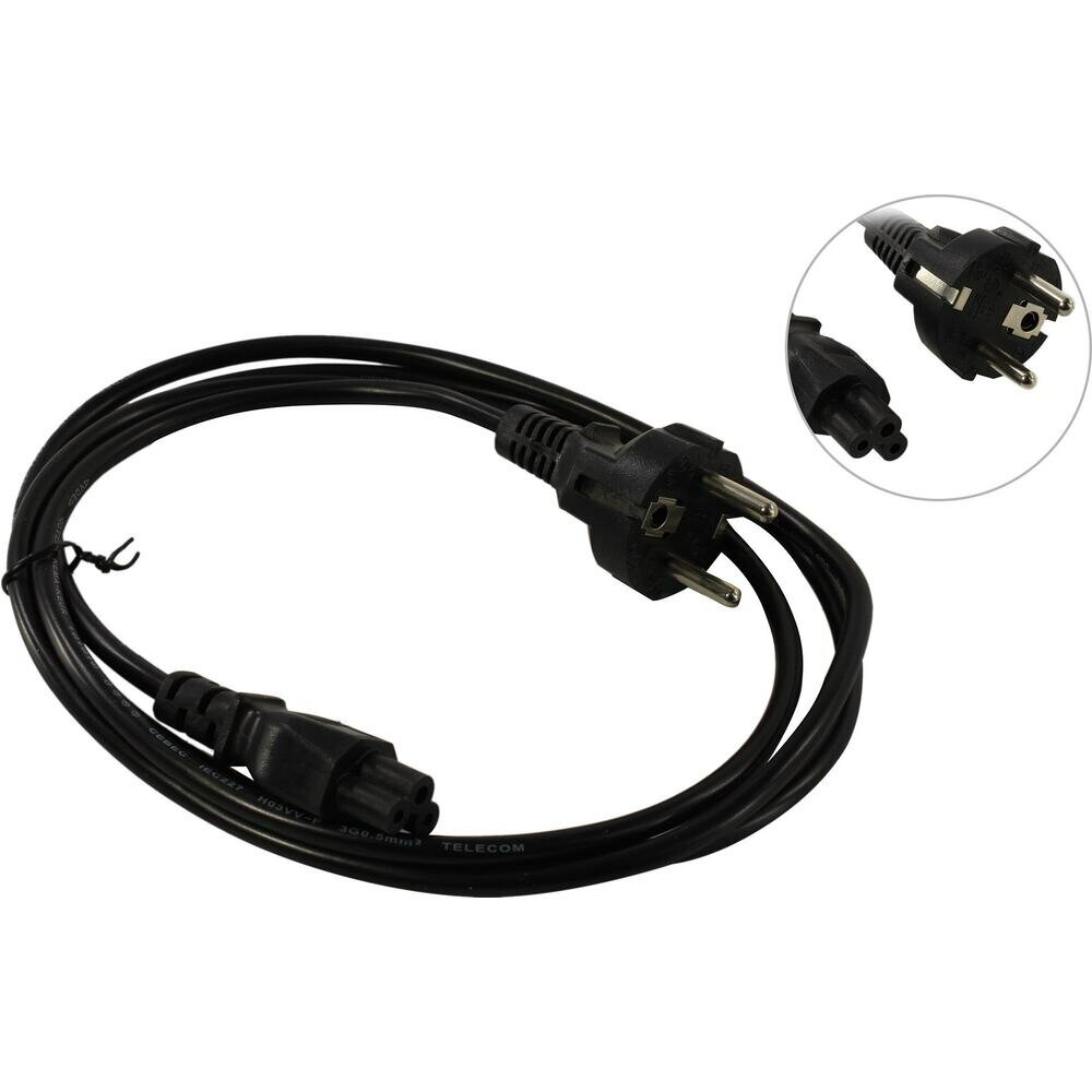 Кабель питания для ноутбуков Telecom 1.8m, 3-pin, с заземлением, 220V (Европейский стандарт)