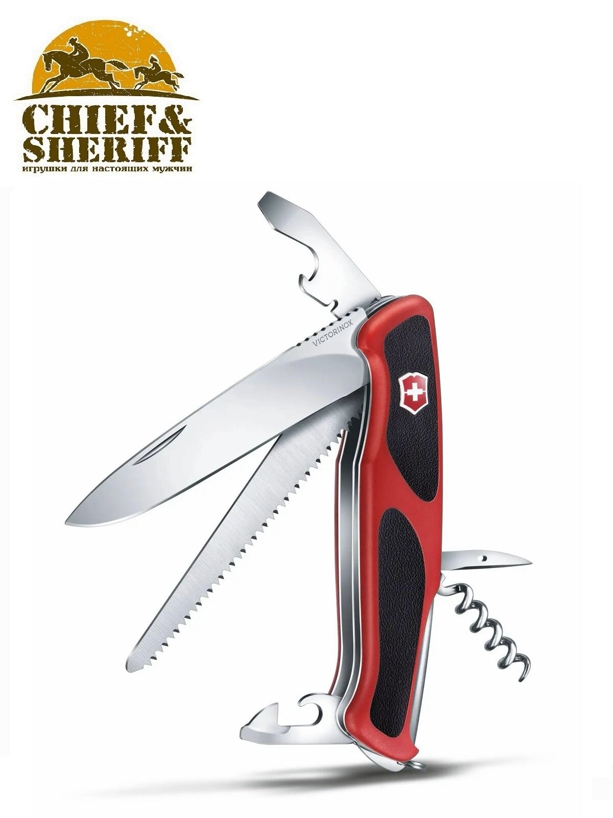 Victorinox. Нож перочинный "RangerGrip 55", 12 функций, 130 мм, с фиксатором лезвия, красный с чёрным