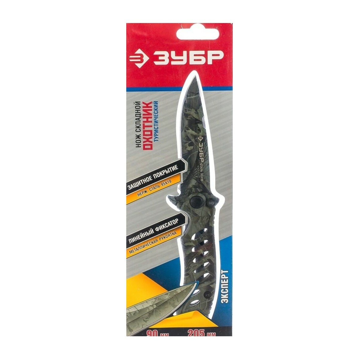 Нож ЗУБР "эксперт" охотник складной цельнометаллический, 205мм/лезвие 90мм