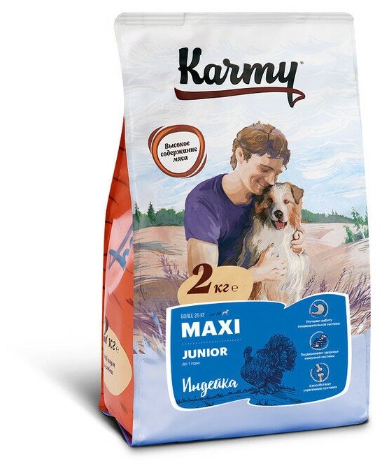 Купить Корм Karmy Maxi Junior для щенков крупных пород, с индейкой, 2 кг