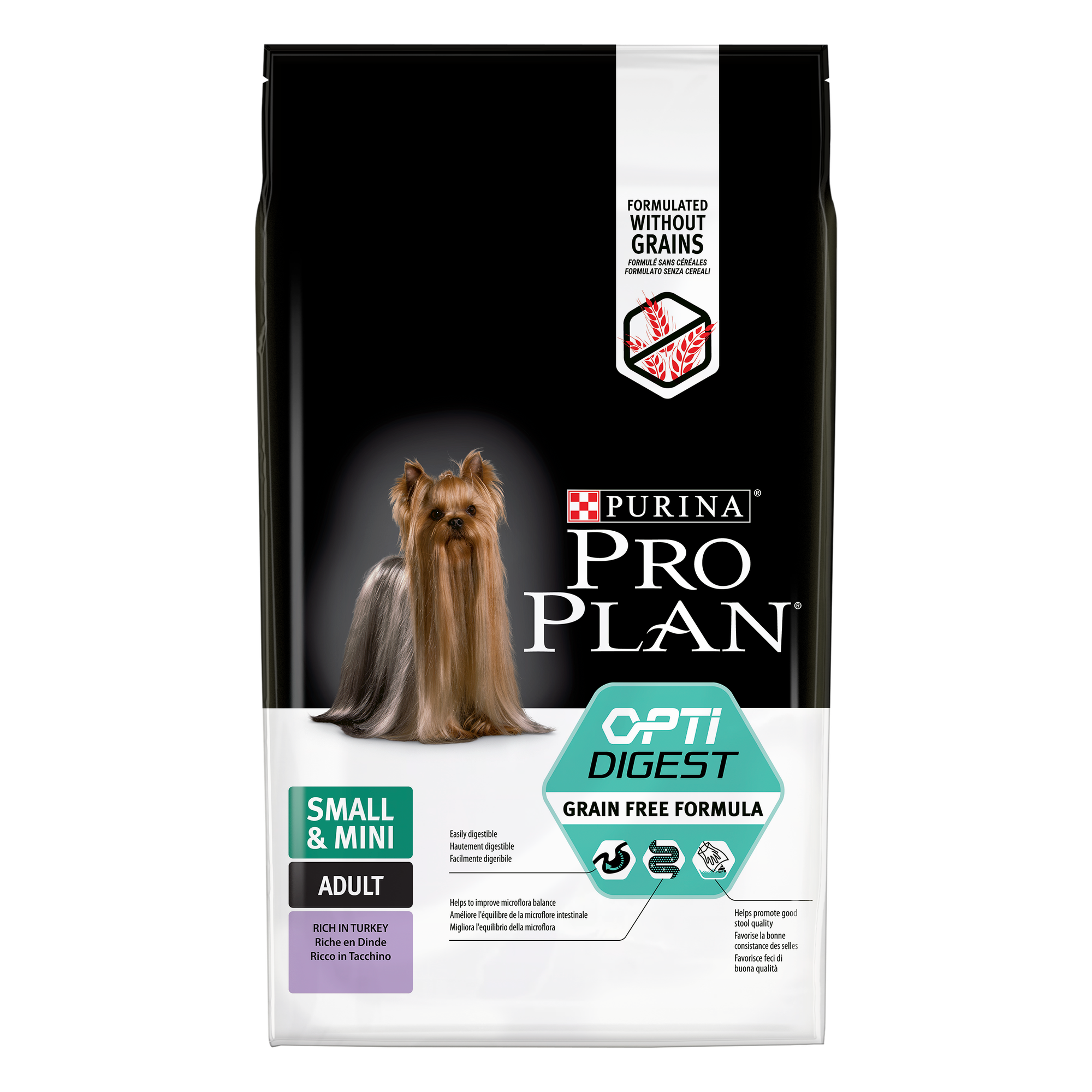 Купить Pro Plan Grain Free Mini корм для взрослых собак мелких пород с чувствительным пищеварением Индейка, 7 кг.