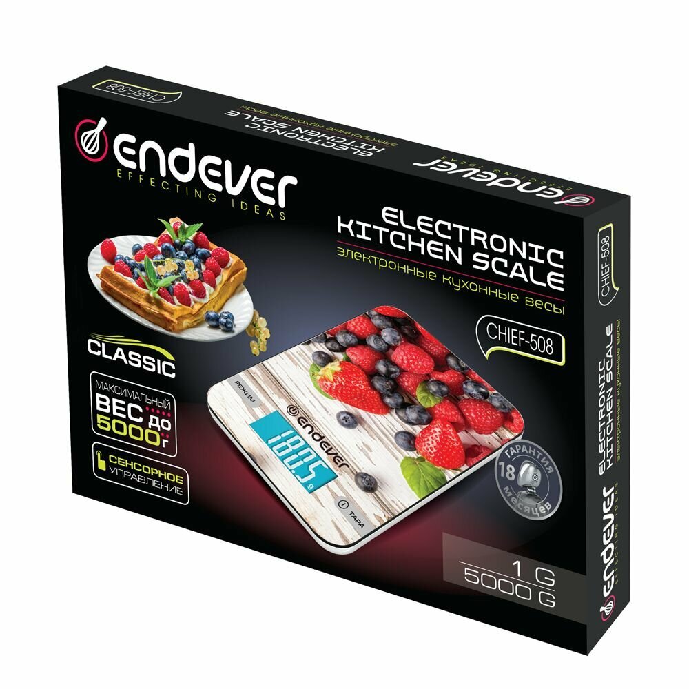Купить Весы кухонные электронные Endever Chief-508 / рисунок Клубника / от 2г до 5кг
