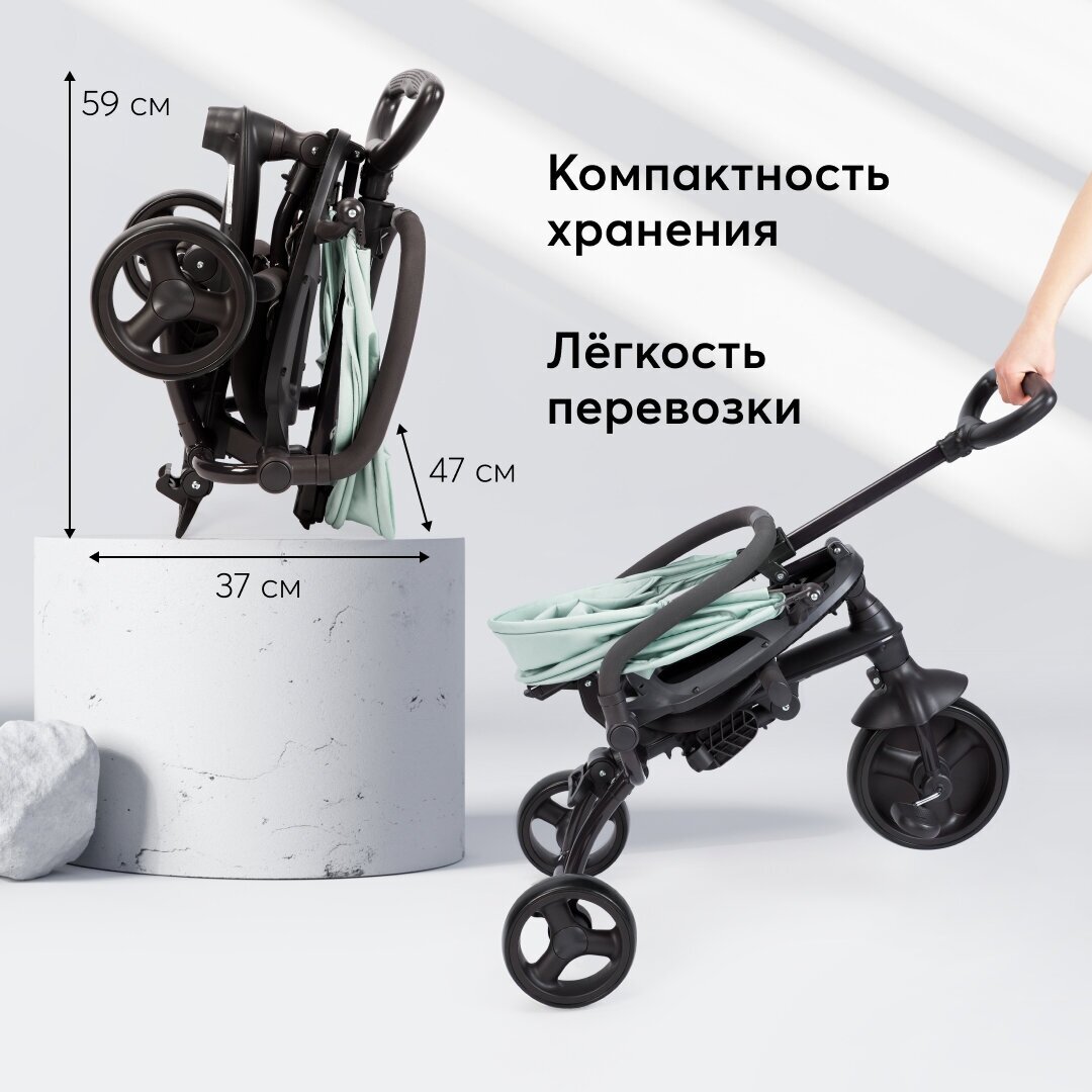 | Минусы: | Небольшой люфт родительской ручки, нет корзины, само складывание занимает некоторое время и отвлекает от ребенка, слабый стопер и только на одном колесе. |