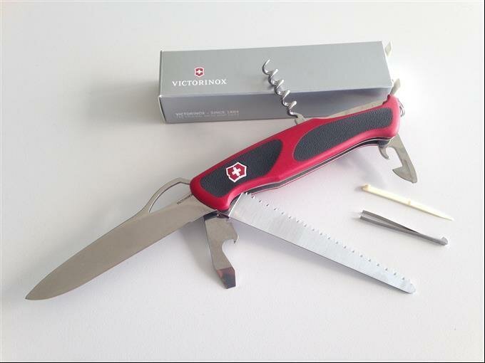 Нож перочинный VICTORINOX RangerGrip 79, 130 мм, 12 функций, с фиксатором лезвия, красный с чёрным