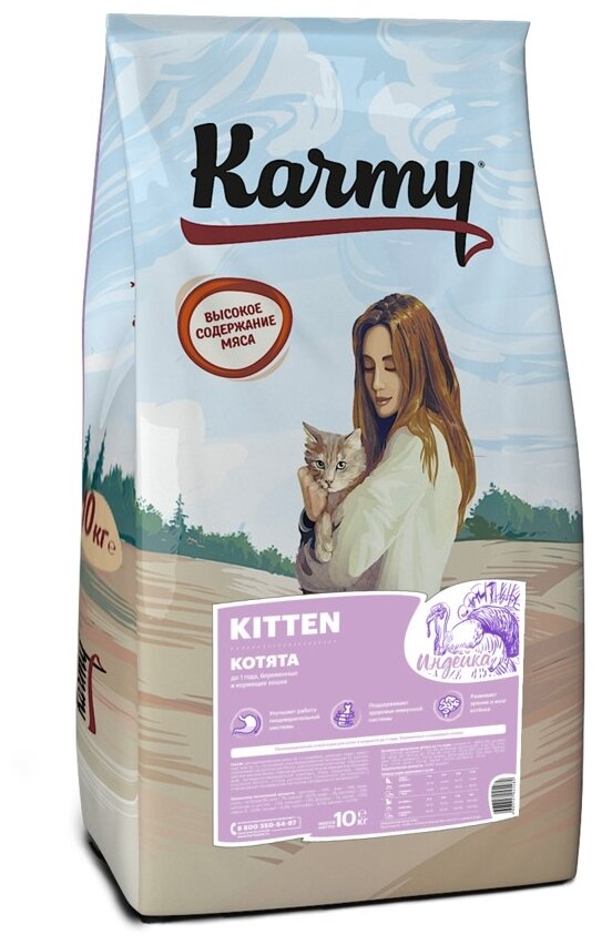 Корм Karmy Kitten для котят, беременных и кормящих кошек, с индейкой, 10 кг