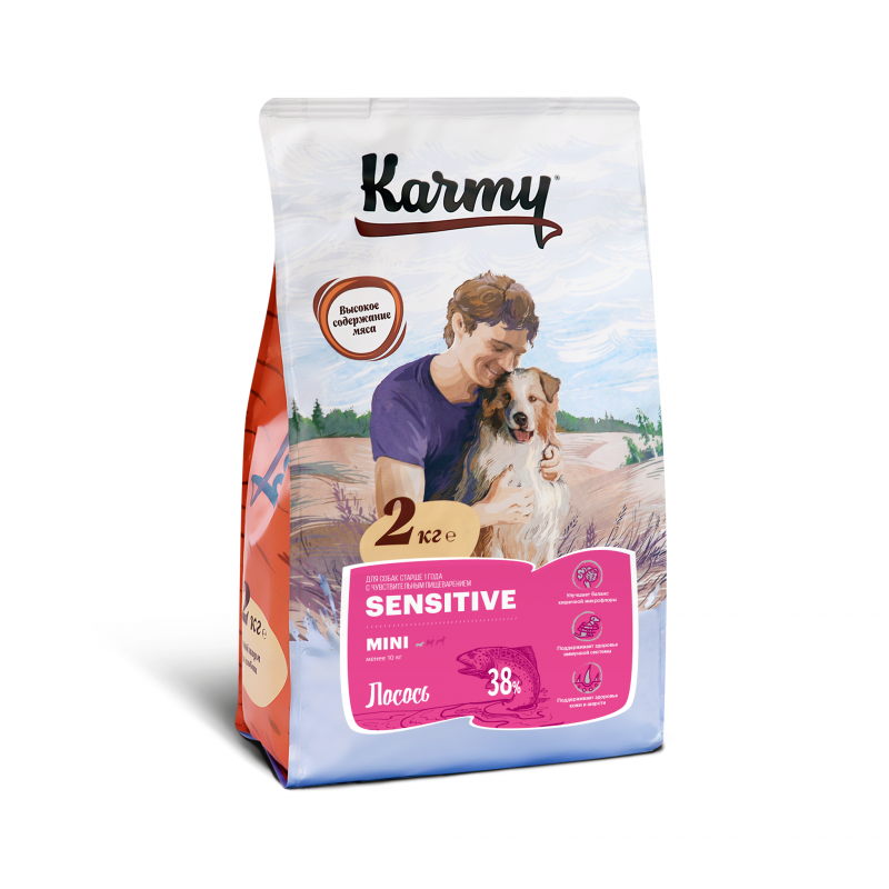 Сухой корм KARMY Sensitive Mini для собак мелких пород с чувствительным пищеварением Лосось 2кг