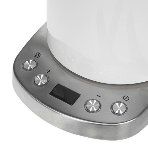 Легкое и интуитивно понятное управление. Удобная функция нагрева воды до разной температуры. Несмотря на то, что пишут в отзывах о неудобстве размещения датчика уровня воды под ручкой, нам это не мешает, т.к. легко контролировать воду при наливании по внутренним входным отверстиям шкалы уровня воды. Смотреть на уровень снаружи чайника вполне удобно. Видимо, это зависит от расположения прибора в кухне. |