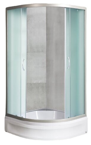 | Плюсы: | Форма в четверть круга, две раздвижные створки, каленое стекло стенок |