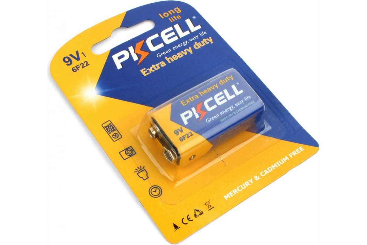Солевой элемент питания PKCELL тип - 9VКрона 1 шт в блистере 6F22-1B