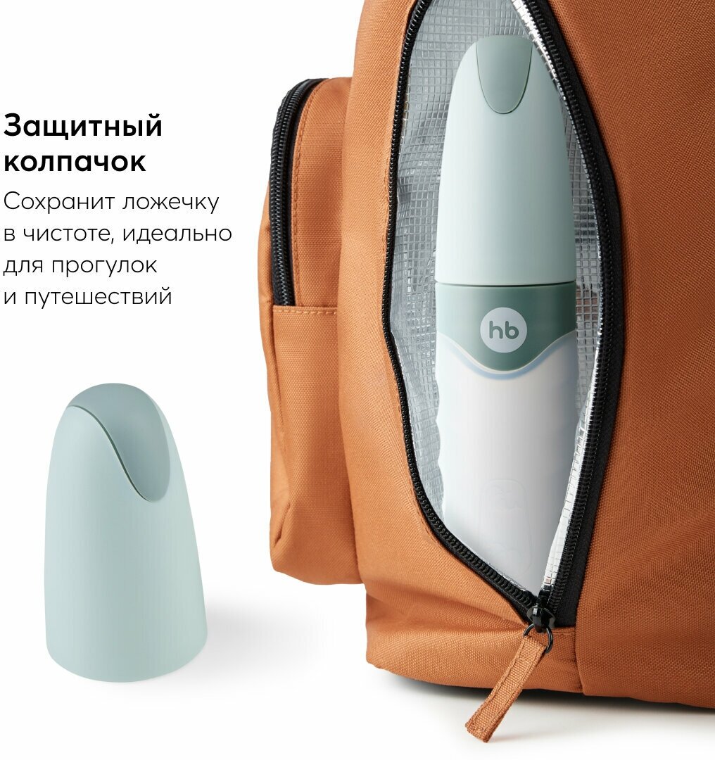 15052, Ложка для кормления детская Happy Baby, дозатор для кормления, прикорма, силиконовая, 90 мл, светло-коричневая