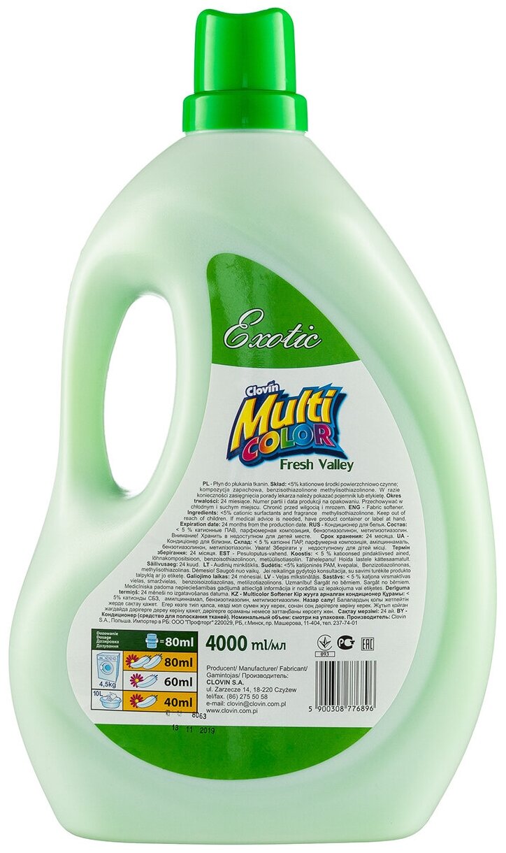 Кондиционер для белья MultiCOLOR Clovin EXOTIC (4 л), мягкость и защита ткани, антистатик, 65 стирок