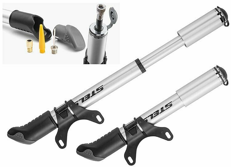 Насос ручной M22-02 STELS телескопический алюминиевый серебристо-чёрный NEW