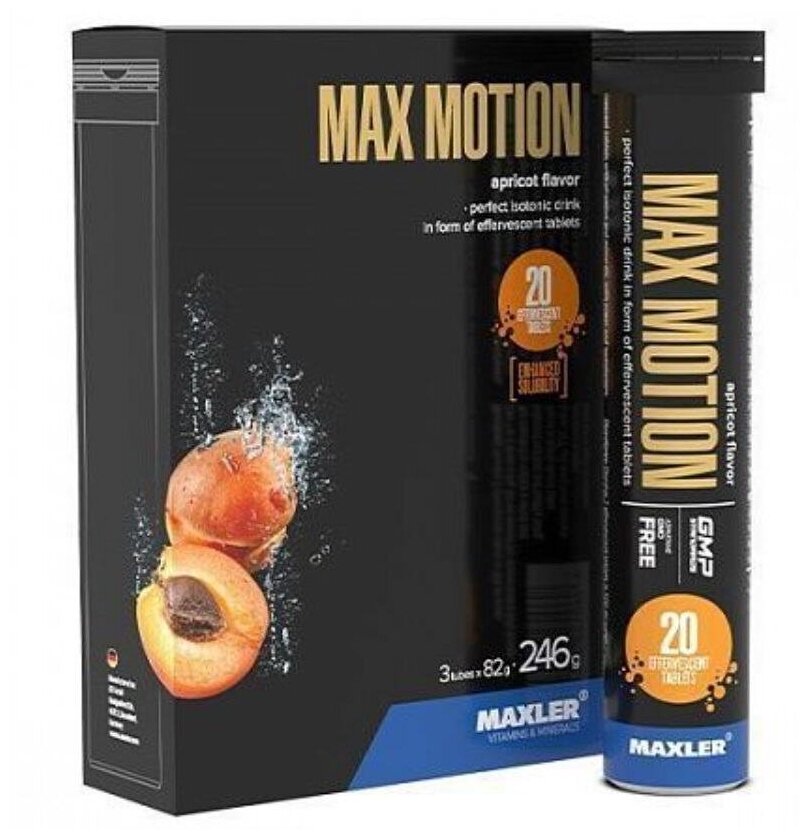 Изотоник Maxler Max Motion, шипучие витамины и минералы ( 3 тубы по 20 штук ) - Абрикос