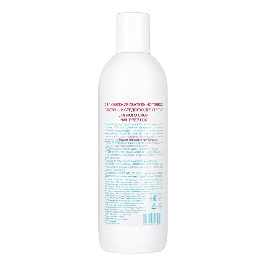 Обезжириватель 2 в 1 LUX ногтевой пластины и ср.для снятия липкого слоя Nail Prep 500 мл
