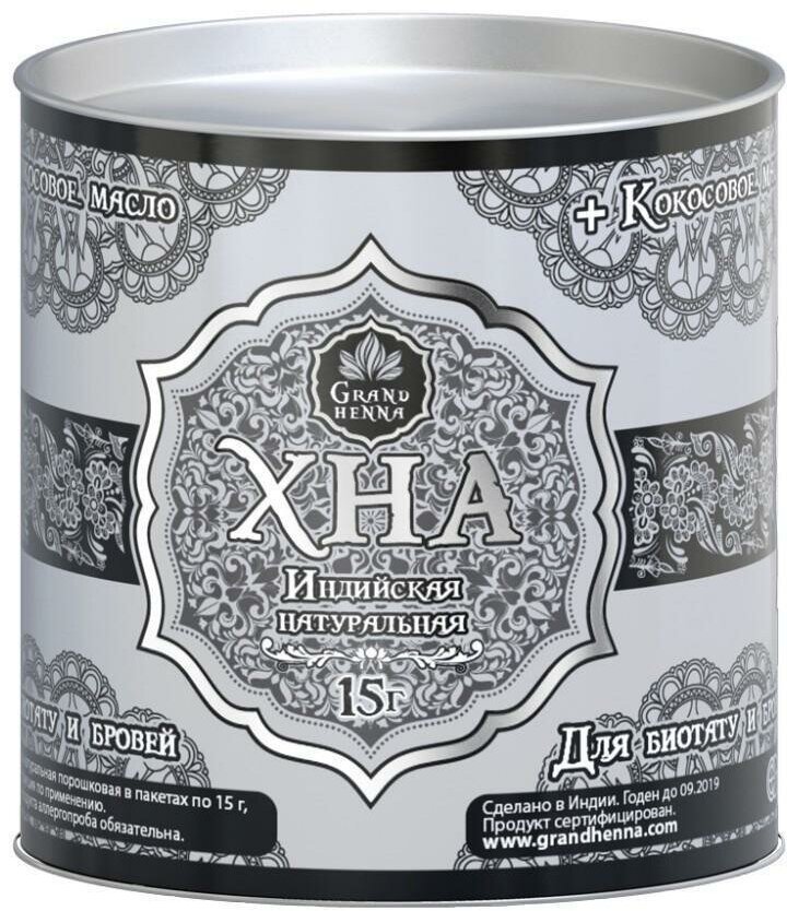 Grand Henna Хна индийская натуральная для биотату и бровей 15 г, коричневый, 15 г
