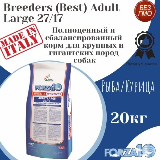 Купить FORZA10 DOG BEST BREEDERS ADULT LARGE для взрослых собак крупных пород с курицей и рыбой (20 кг)
