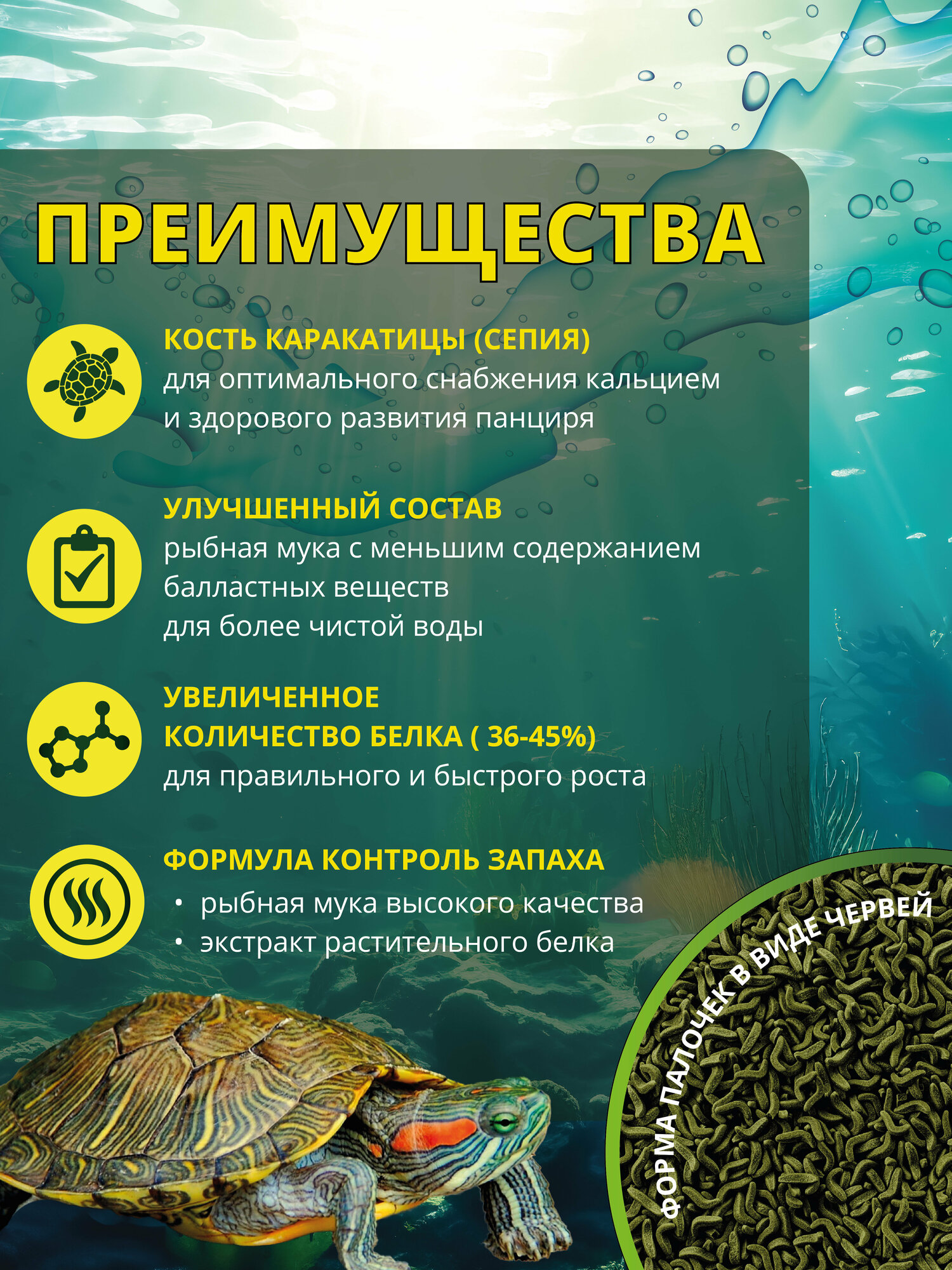 | Плюсы: | Самый лучший корм для черепах |