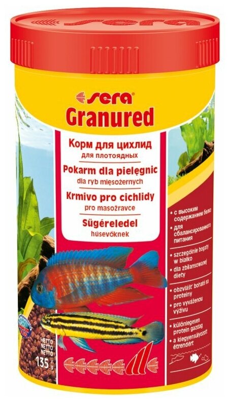 Sera Granured Корм для цихлид плотоядных для улучшения окраски - 135 г