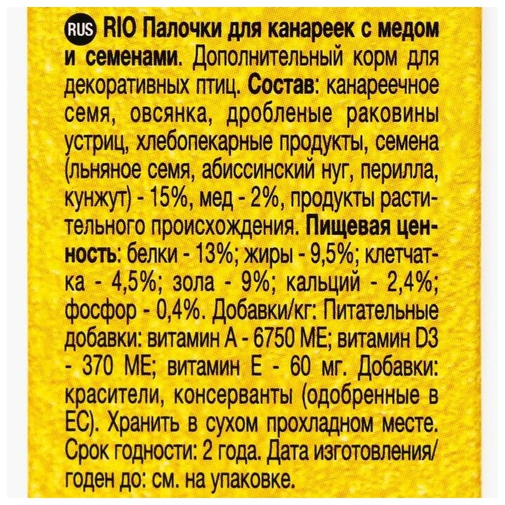РИО Палочки для канареек с медом и полезными семенами