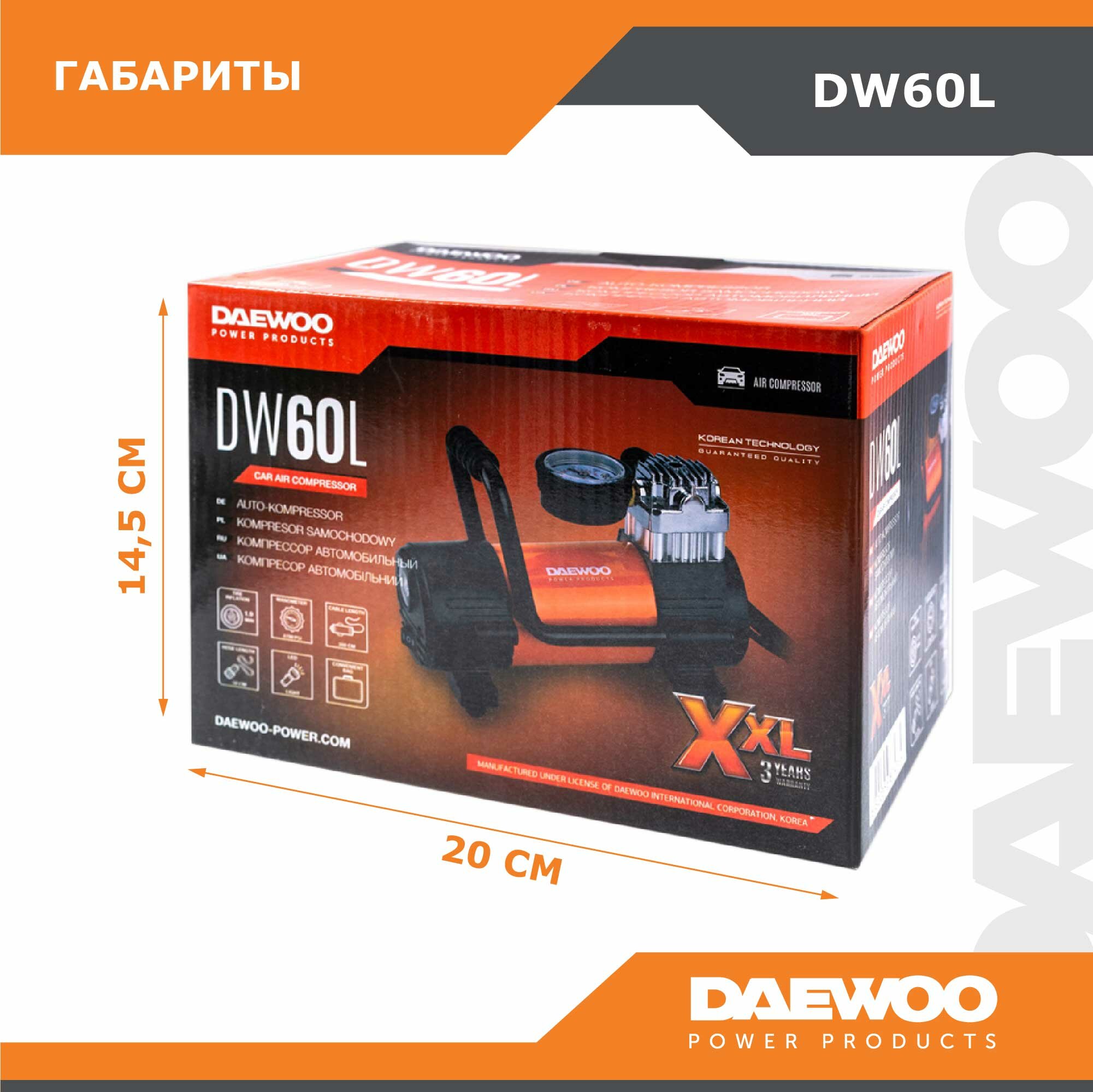 Автомобильный компрессор Daewoo Power Products DW60L черный/оранжевый
