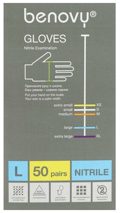 Benovy Перчатки Benovy (L) латексные нестерильные текстурированные, 50 пар/уп