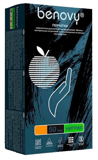 СохранитьПерчатки нитриловые XS 50 пар Benovy multicolour интересное: