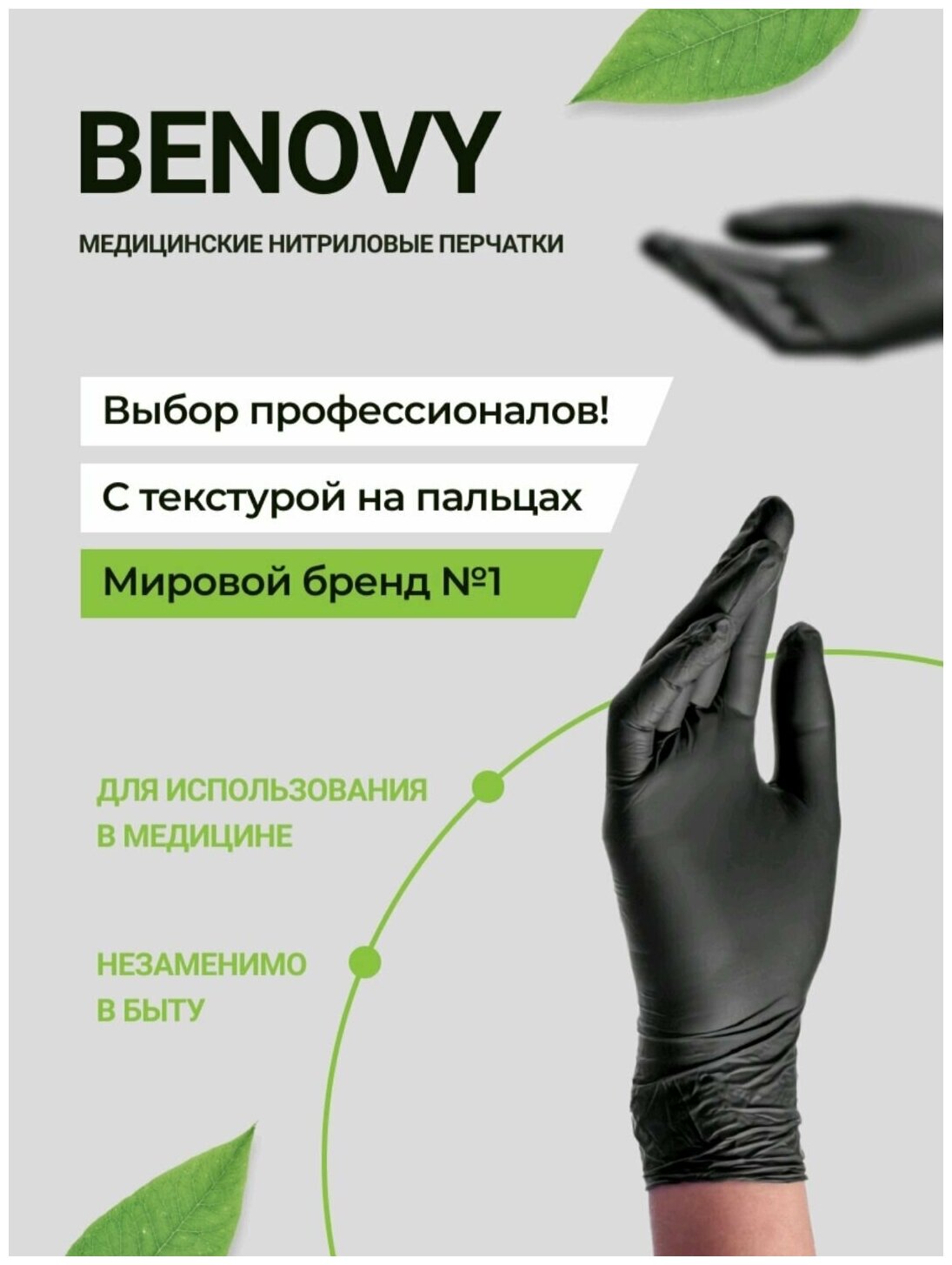 Benovy Перчатки черные нитриловые медицинские 100шт (50 пар) , размер S